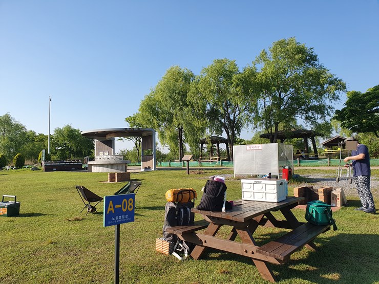 개수대도 가깝고 코로나로 우리 옆 사이트가 비어 있기 때문에 이 자리만큼 편리한 자리가 있을까 싶었다.
