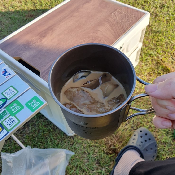 남편이 텐트를 칠 동안 나는 냉커피를 만들어 먹기로 했다.
