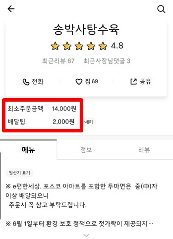포장시엔 포장할인이 들어간다고 합니다.