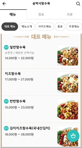가격은 14,000~28,000원이며, 양이나 탕수육의 종류에 따라 가격이 상이합니다.