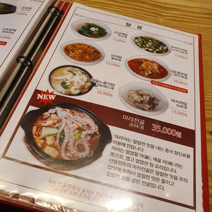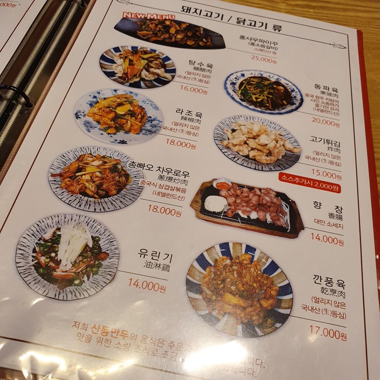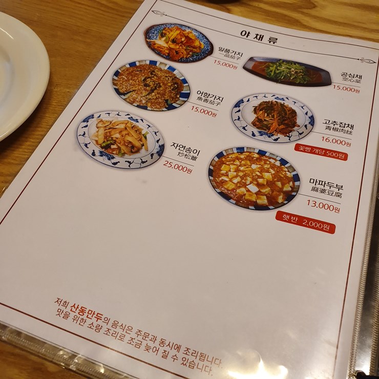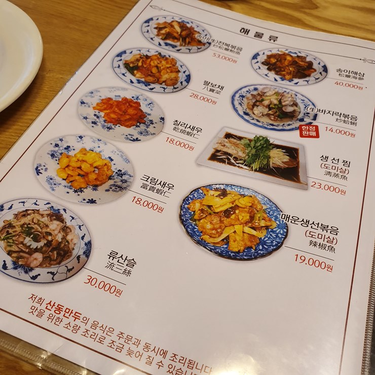산동만두 메뉴판을 보아하니, 메뉴가 매우 다양하고 가격이 합리적네요.