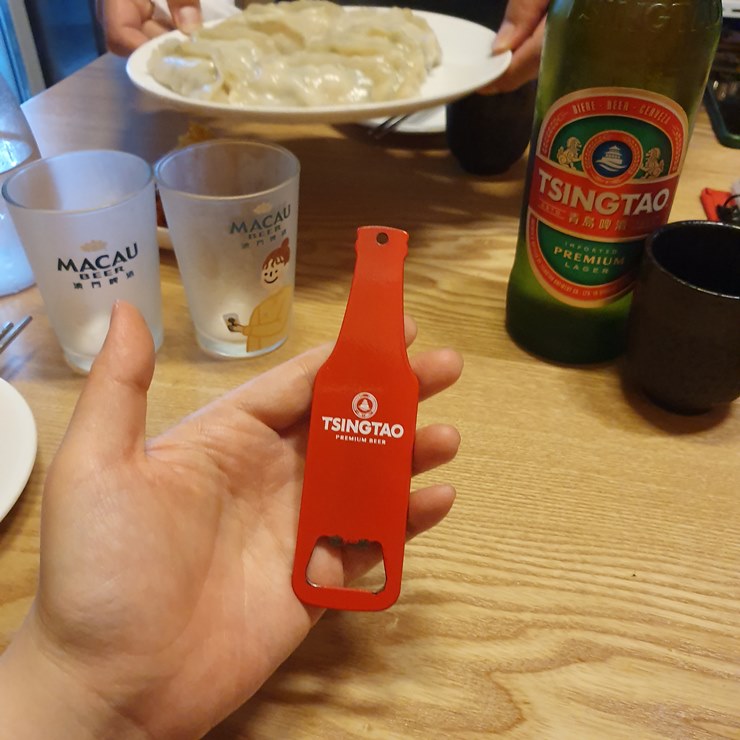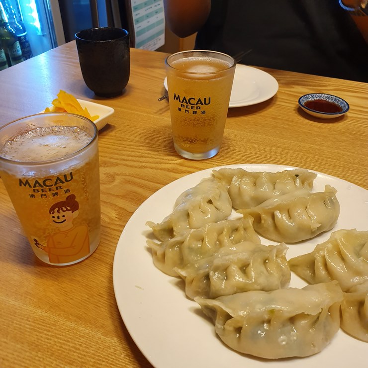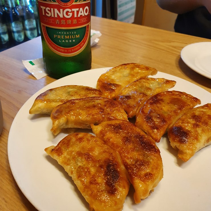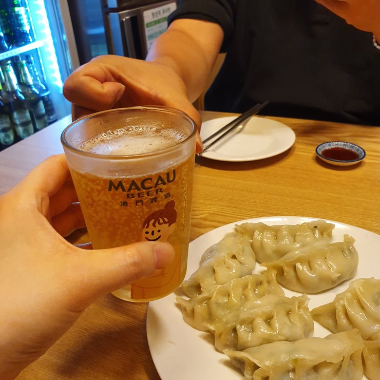 맥주로 일단 목을 축이고, 만두를 먹어보겠습니다.