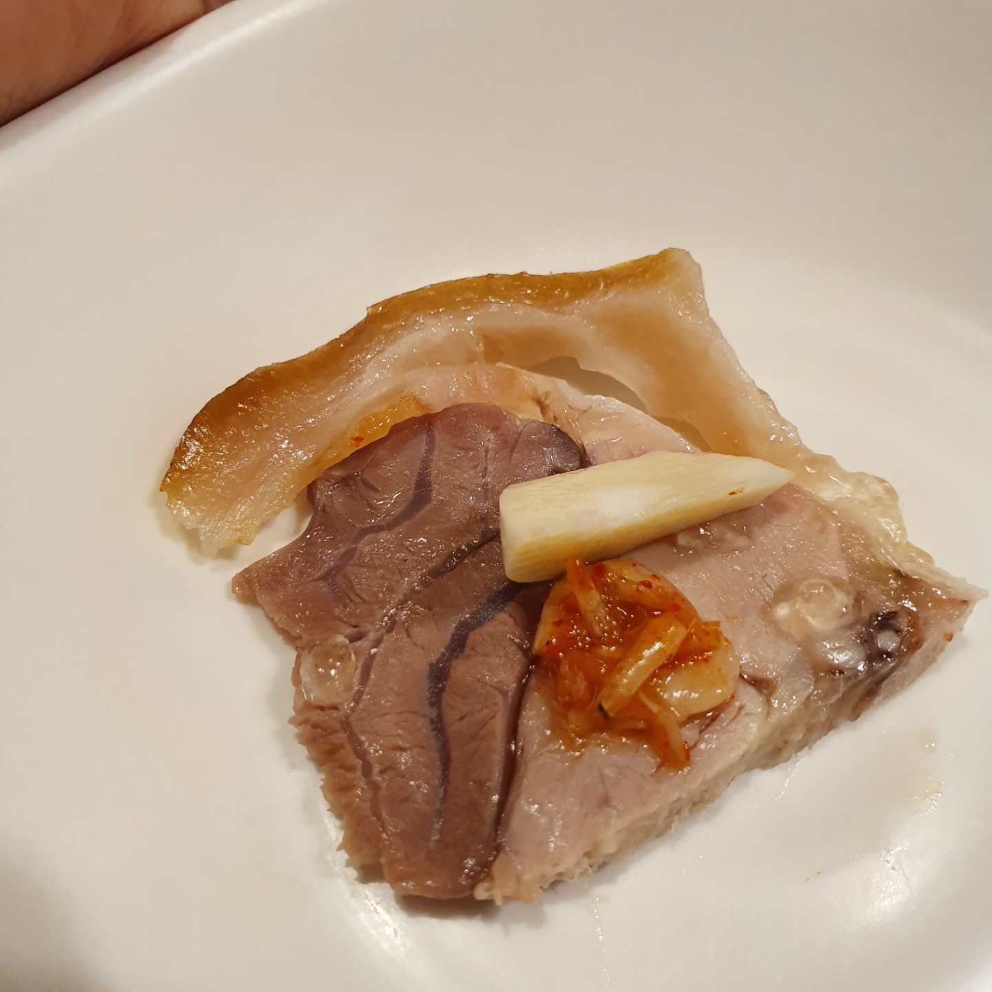 두껍게 썰어주셨더라면 조금 느끼 했을 수도 있을텐데, 얇게 썰어주니 딱 좋네요.