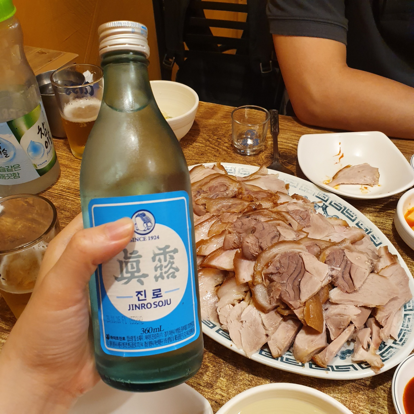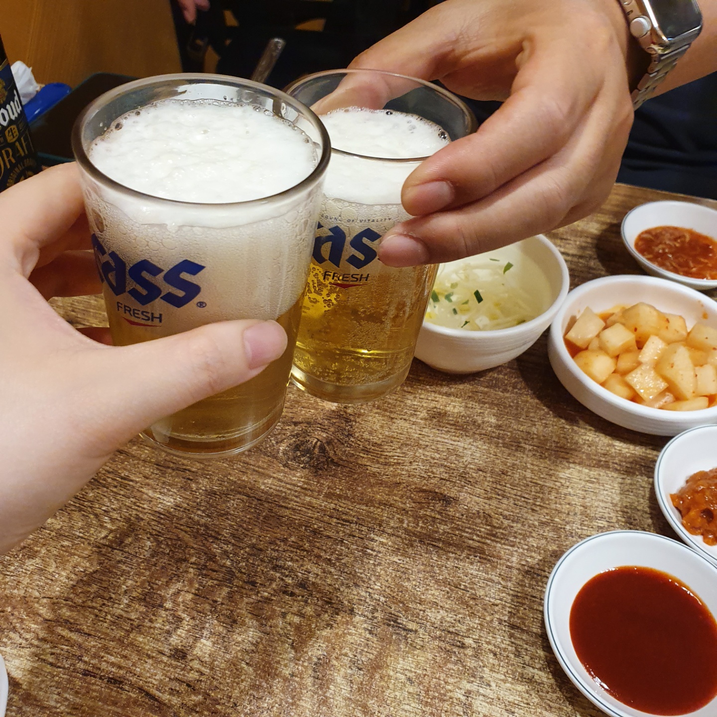 저는 남은 맥주를 다 마시고 소주로 넘어가기로 했고, 남편은 바로 소주로 넘어갔습니다.