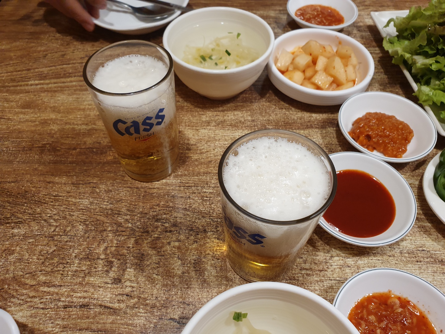 족발엔 소주지만, 맥주를 시킨 이유는 집에 돌아갈 때 따릉이를 타고 가야하기에 가볍게 마시자는 이유에서 였죠.