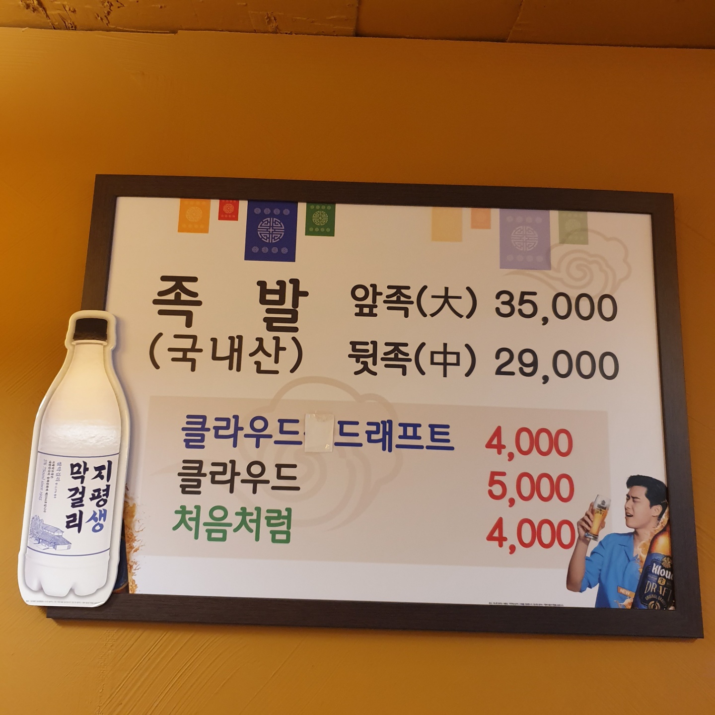 우리부부는 족발은 무조건 앞다리 미만 잡이라고 생각하기에 뭐 물어볼 필요없이 앞족(35,000원)과 클라우드드래프트 1병을 시켰습니다.