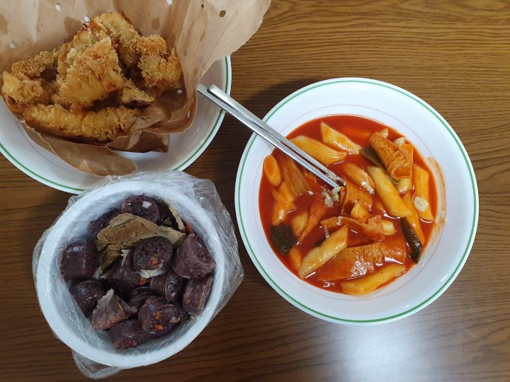 저녁으로 가볍게 떡볶이를 사먹고 왔습니다.