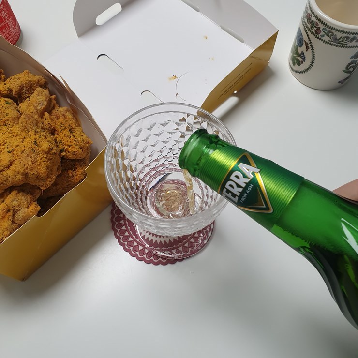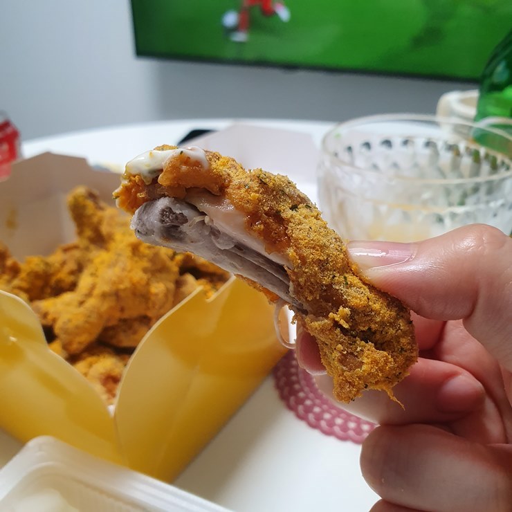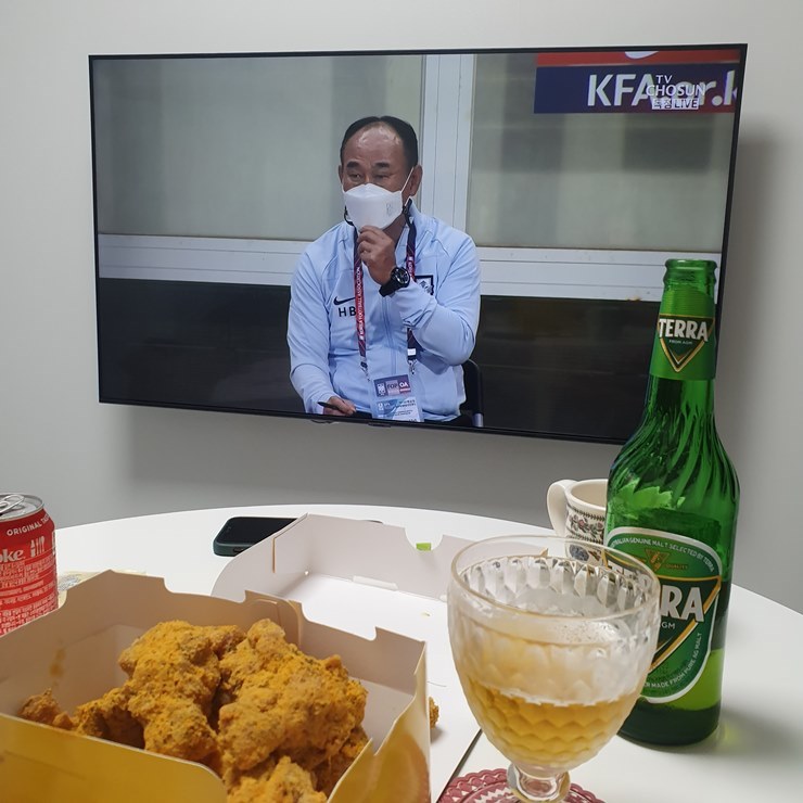 남편이 축구하니까 치킨은 꼭 먹어야 된다고 했는데, 치킨먹으면서 축구보니까 꿀잼이네요.