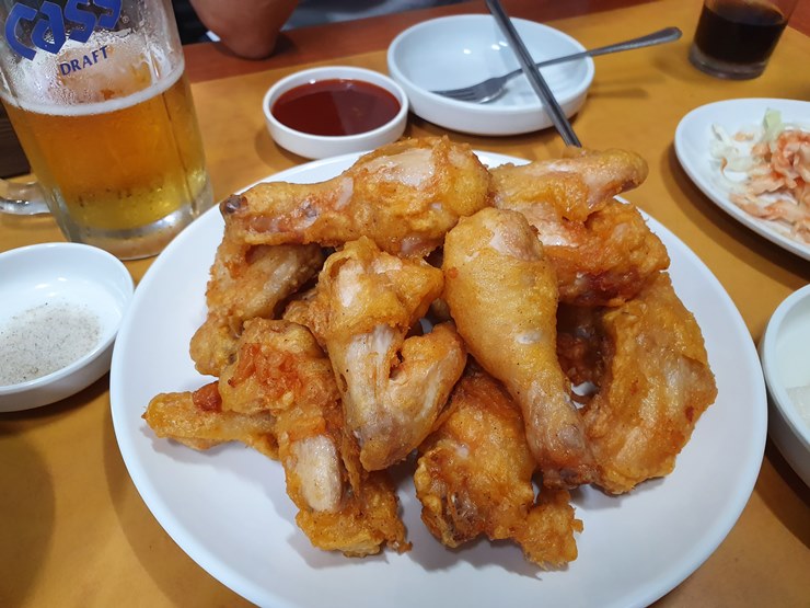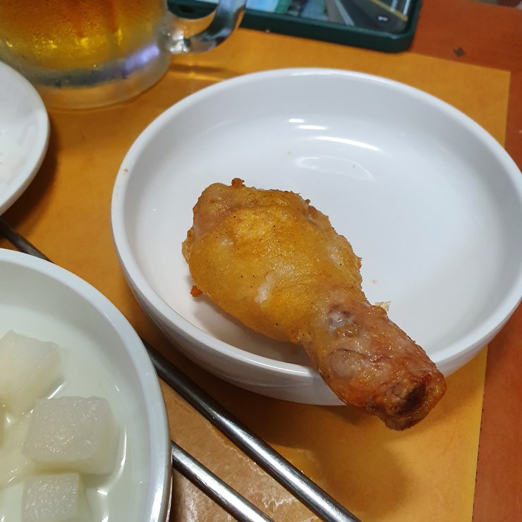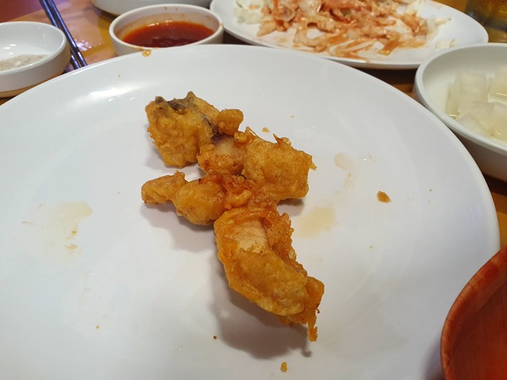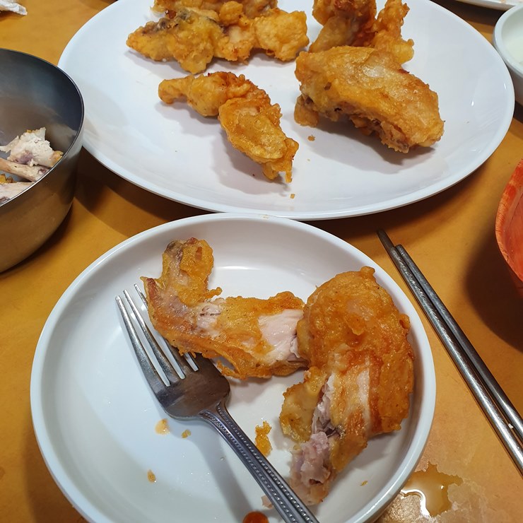 튀김옷이 두껍지 않으면서 바삭거리는게 딱 옛날통닭 스타일이더라구요.