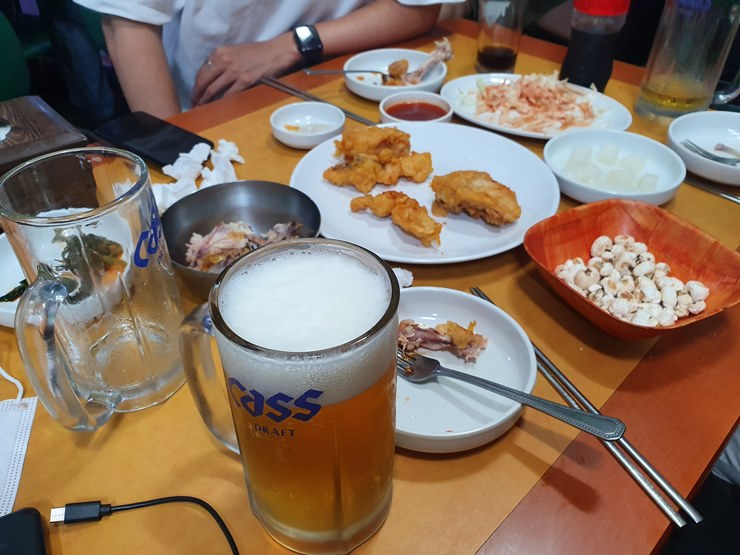 시원한 생맥주 한모금에, 위에서 장으로 내려갑니다~ 꿀렁꿀렁.