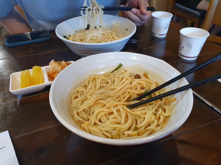 특징: 1인 운영 가게로, 거의 모든것이 셀프임. 가성비가 좋으며, 주문과 동시에 제면하여 제공해 주어 면발이 맛있음.