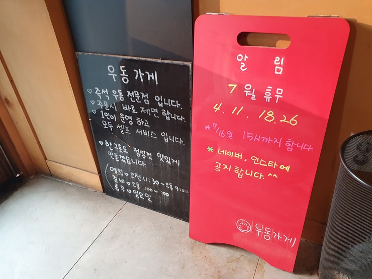 기타 휴무나 우동가게에 대한 공지사항은 인스타그램 또는 네이버를 통해 한다고 합니다.