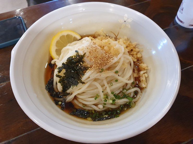 붓카케 냉 우동이 나왔습니다.