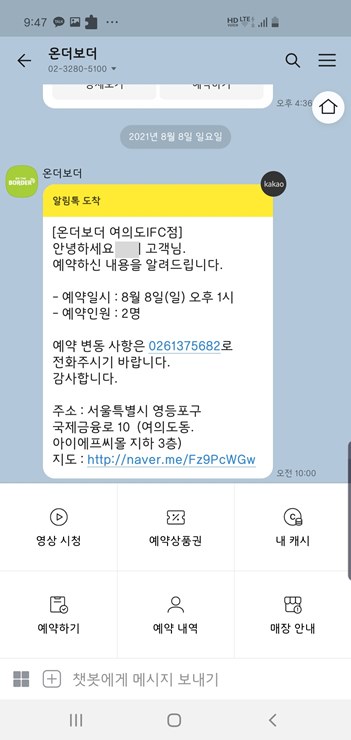 온더보더 예약 시스템을 통해 예약 방문하실 분들은 예약시간 10분이 초과되면 자동 취소가 되오니 이 점 유의하여 방문하시면 좋을 것 같습니다.