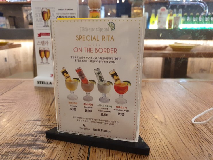 온더보더는 타코샐러드 주문해서 맥주나 칵테일 먹기도 매우 좋은 곳이죠.