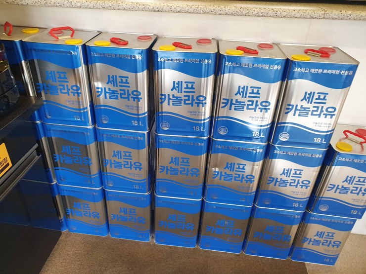 그리고 셰프 카놀라유 통을 보고, 뭔가 깨끗한 기름을 사용하는 것 같다는 느낌도 받았어요.