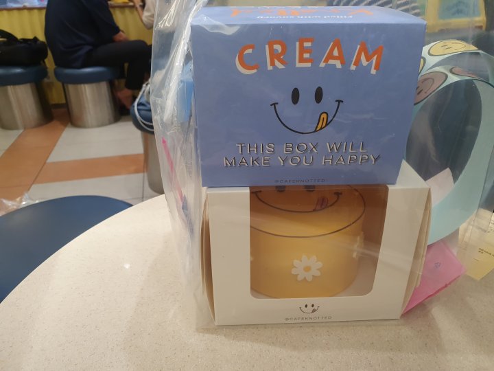 오늘 강남 갔다가 생각나서 남편과 함께 카페 노티드에서 옐로우스마일 케이크와 도넛들을 사왔습니다.