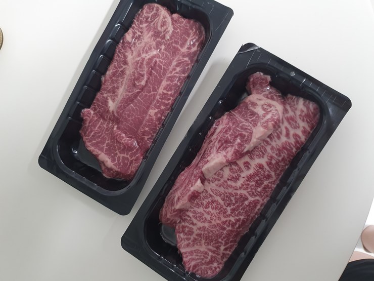 구성은 1+등급의 한우 등심 250g과 부채살 250g으로 이루어져있죠.