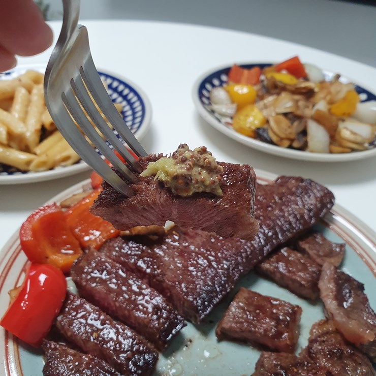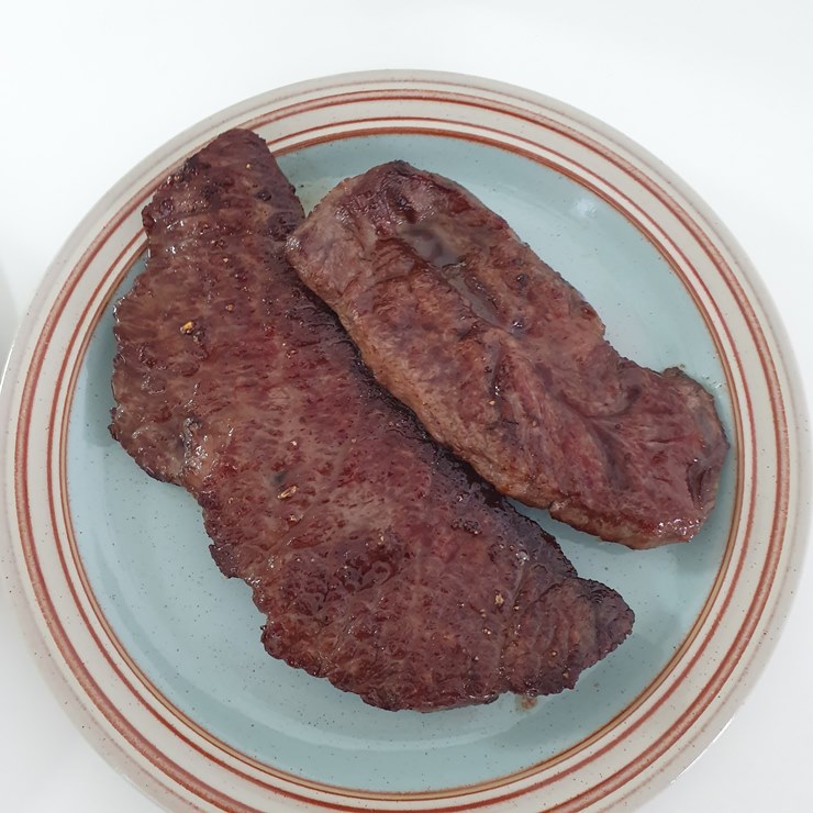 로스용처럼 얇지도 않았고, 집에서 먹기에 부담스러운 스테이크용(3cm~)도 아니었어요.