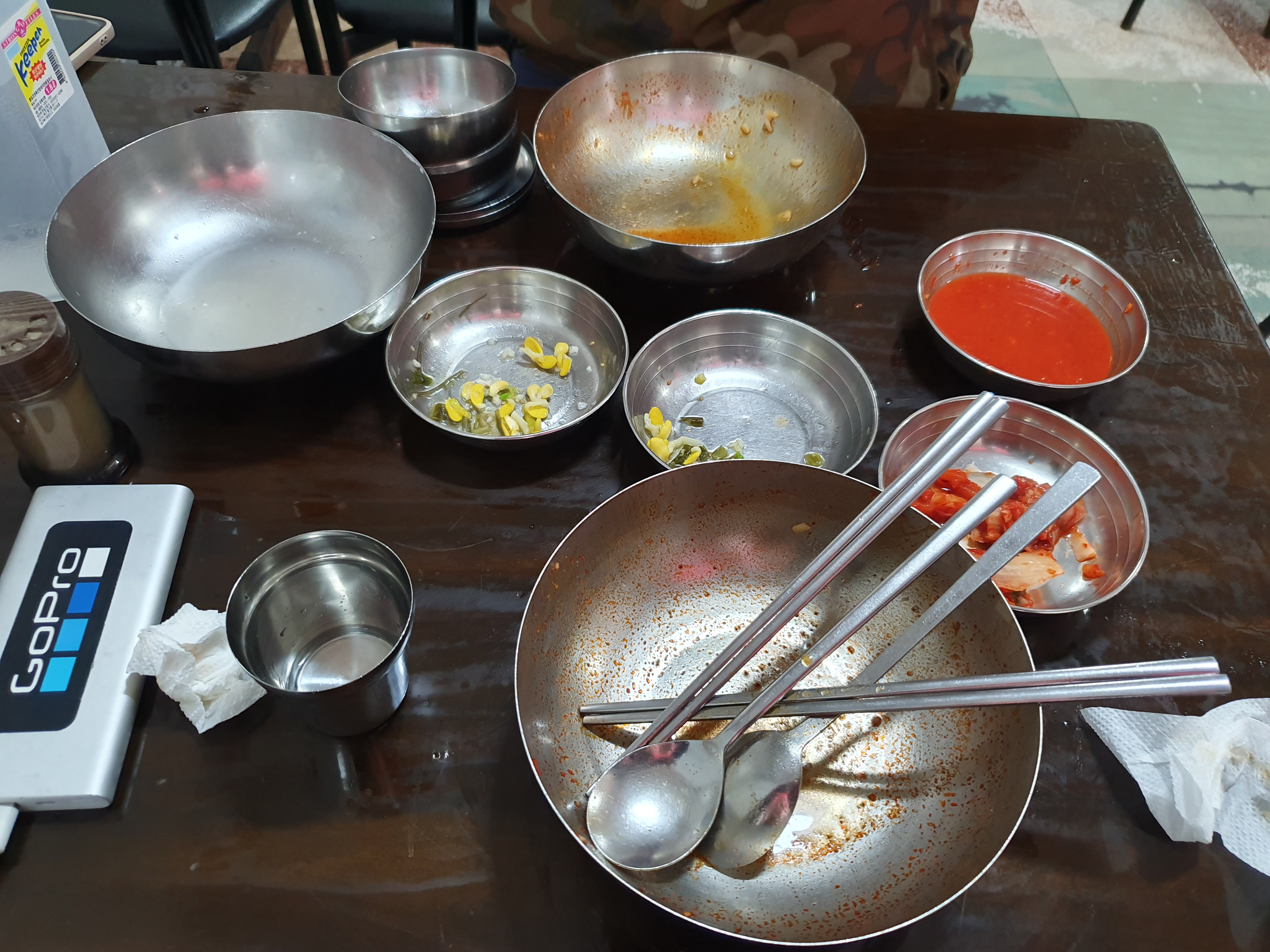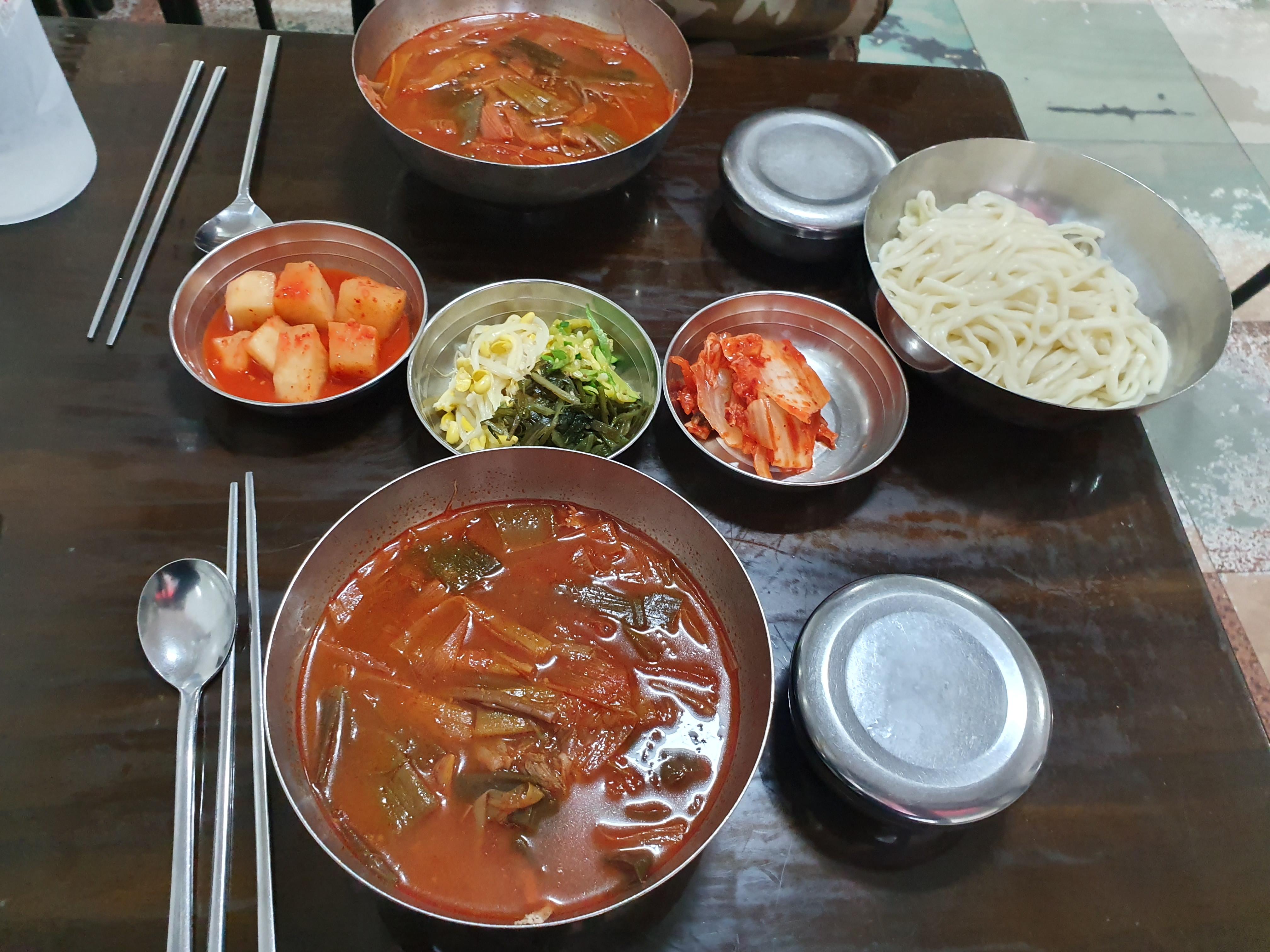 스테인레스, 일명 스뎅 그릇에 나오는데 뭔가 문배동육칼 가게랑 어울려요.