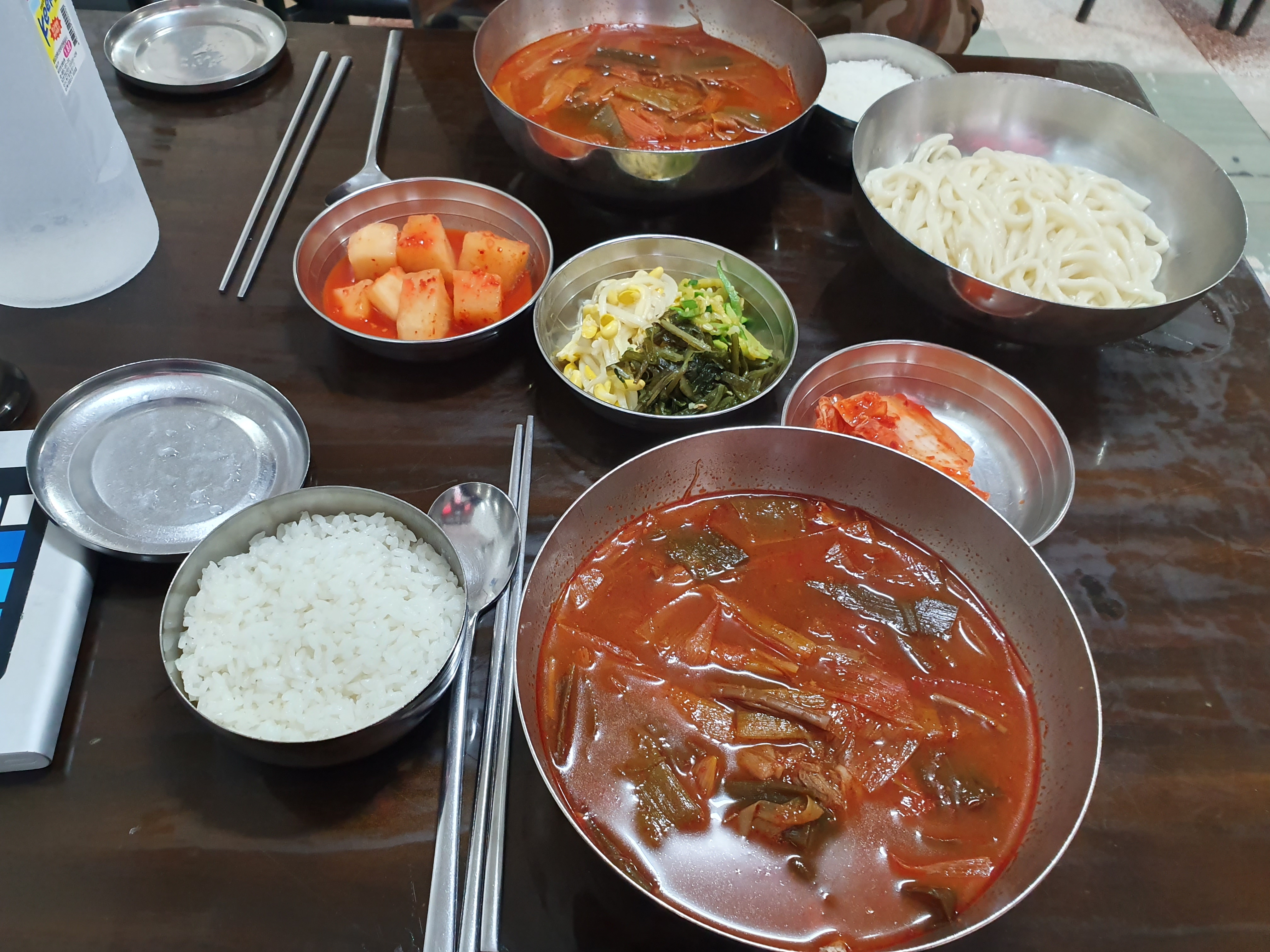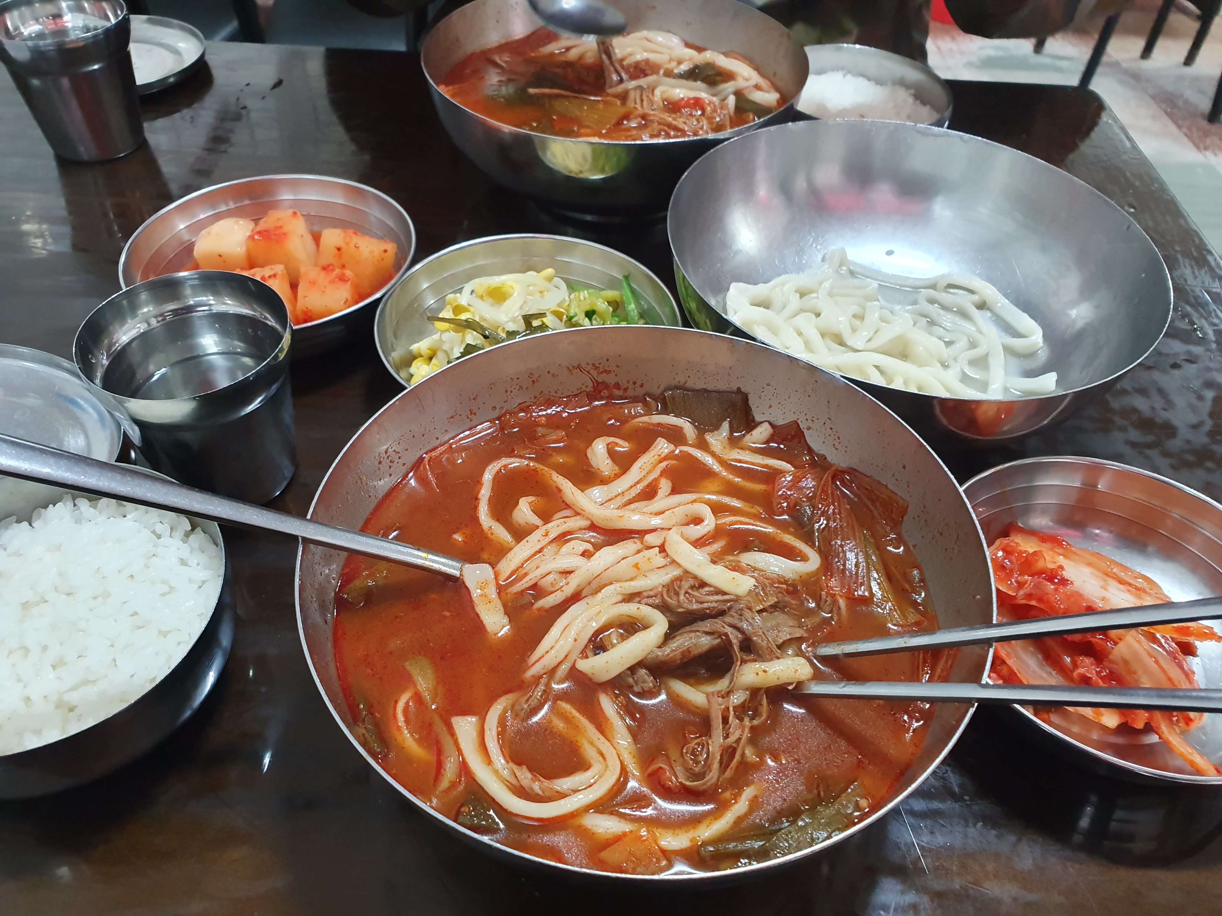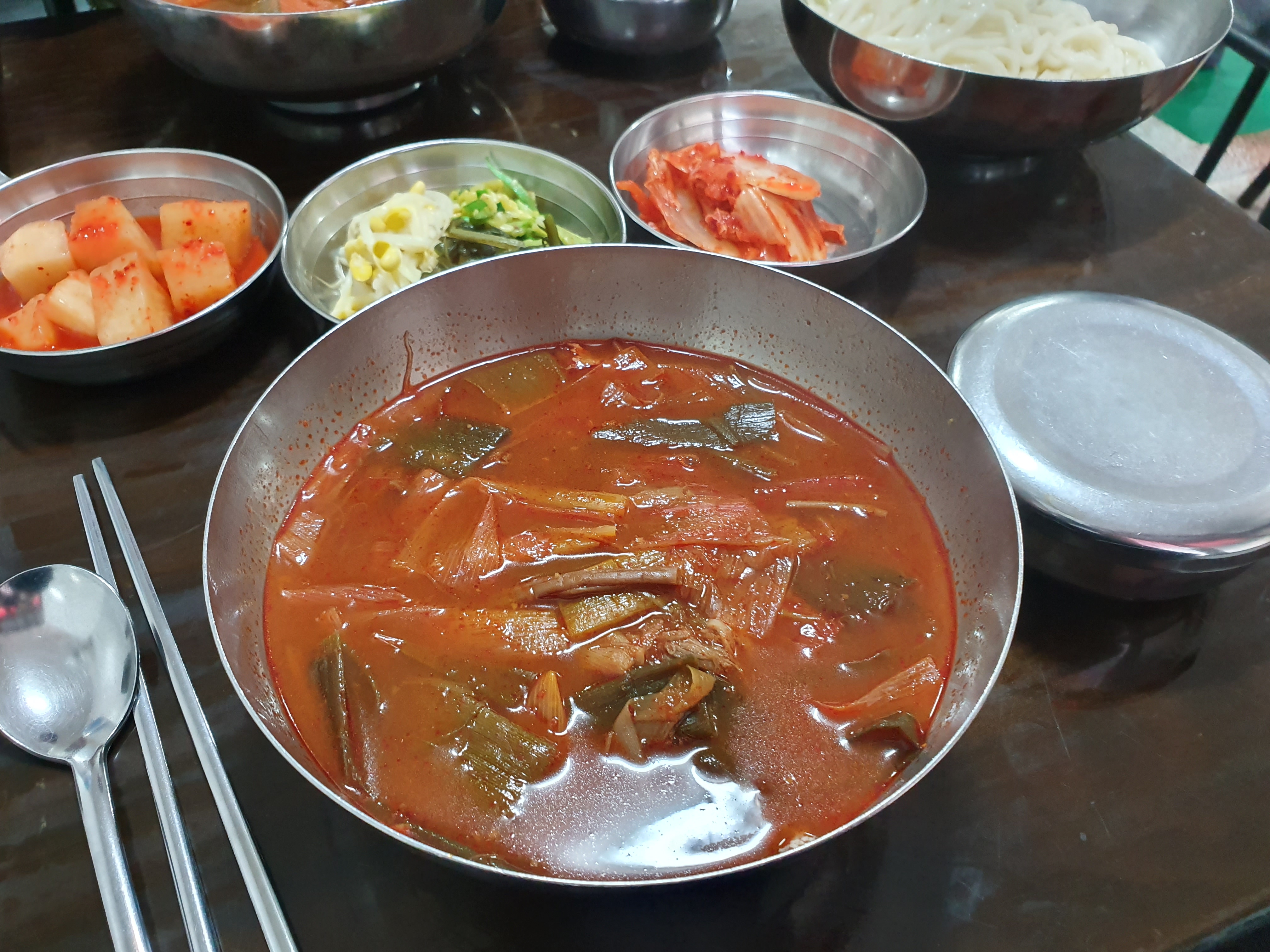 육개장에는 칼국수와 공기밥이 나오기 때문에, 저는 가면 무조건 육개장을 먹습니다.