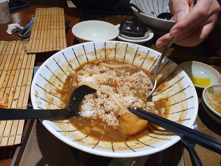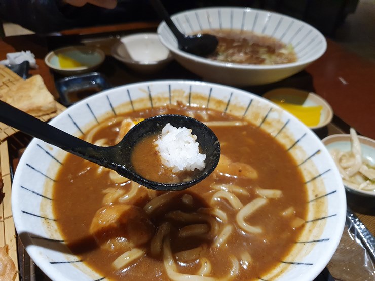 카레우동에는 소량의 밥이 포함되어 나오는데요.
