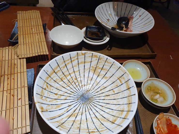 둘이서 닭카레우동 곱빼기, 튀김 냉소바, 공기밥까지 깨끗하게 먹었네요.